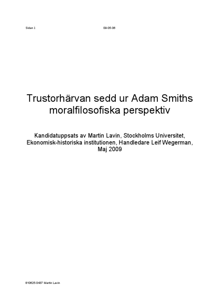 Trustorharvan Sedd Ur Adam Smiths Moralfilosofiska Perspektiv