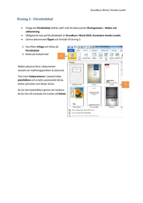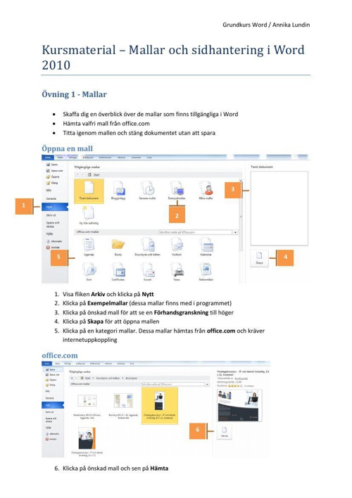 Kursmaterial Mallar Och Sidhantering I Word 2010 By Brolin