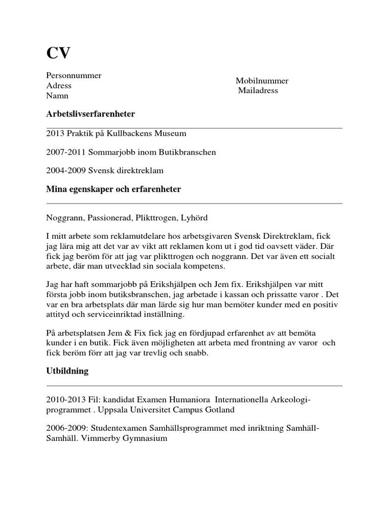 Fixa Sommarjobb Allt Du Behover Veta Cv Mallen