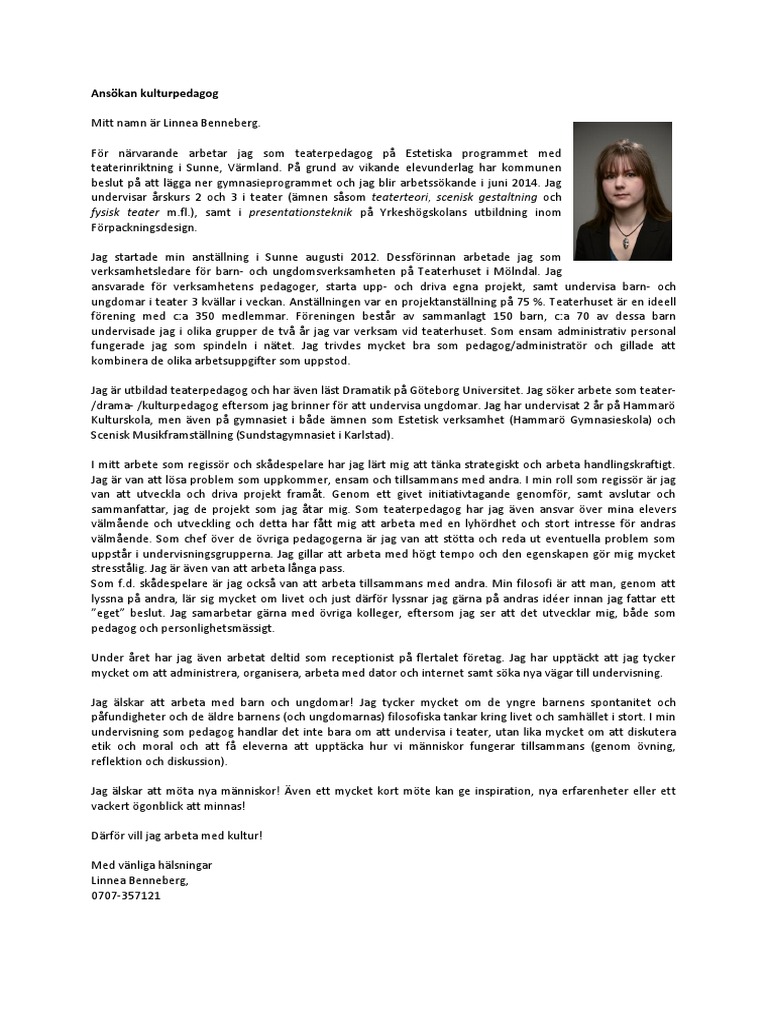 Personligt Brev For Larare Mallar Exempel Personligtbrev Se