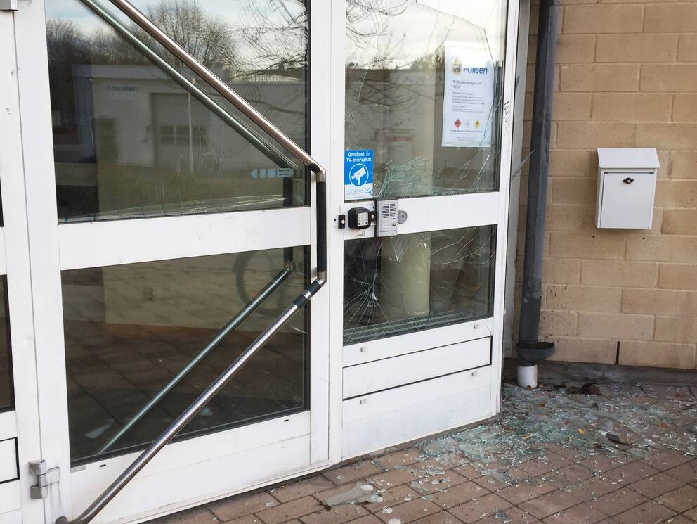 Attack Mot Polisstation I Vaxjo Kraftig Small Krossade Rutor
